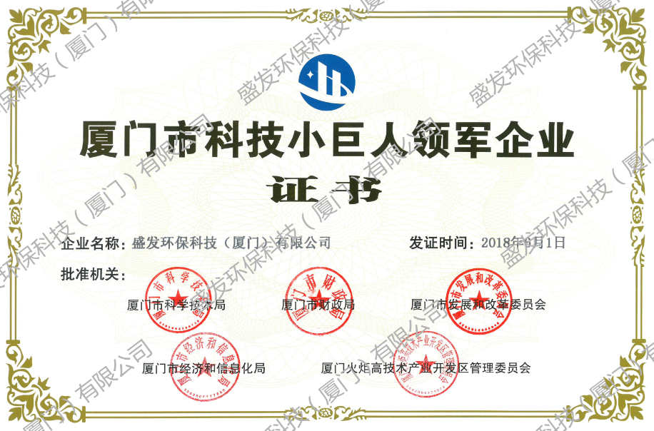 日前,盛發(fā)環(huán)??萍迹◤B門)有限公司憑借在研發(fā)投入、創(chuàng)新實(shí)力、科技成果轉(zhuǎn)化、自主知識產(chǎn)權(quán)、融資能力等多項(xiàng)指標(biāo)的突出表現(xiàn),在眾多從事戰(zhàn)略新興產(chǎn)業(yè)領(lǐng)域的中小企業(yè)中脫穎而出,被授予“2018年廈門市科技小巨人領(lǐng)軍企業(yè)“榮譽(yù)稱號。