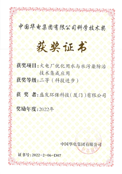 熱烈祝賀盛發(fā)環(huán)保榮獲中國華電集團科學技術二等獎
